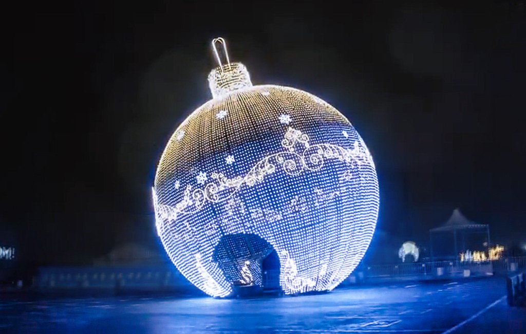 科而美在俄罗斯制造了一个光芒夺目的巨型圣诞球灯,吸引了不少游人在巨球前面拍照。这个超级圣诞球灯不仅给当地增添了浓浓的圣诞气氛,还吸引了游客眼球。