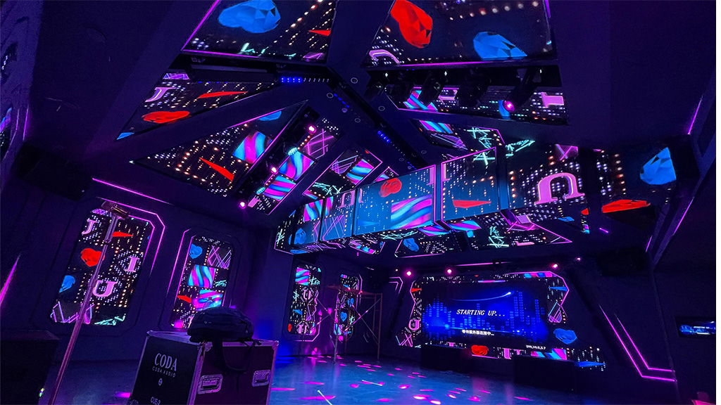 不规则的建筑结构结合各种异形屏,创造出一个与传统形式截然不同的KTV,进入东莞CAV后犹如进入了另一个次元空间,给你带来与众不同的全新体验。