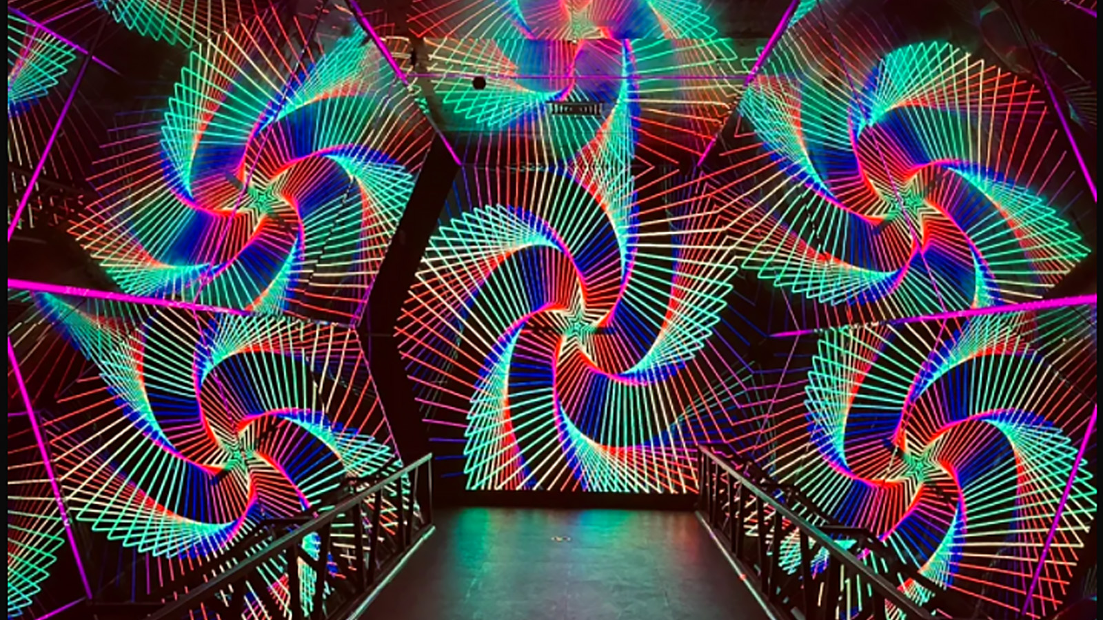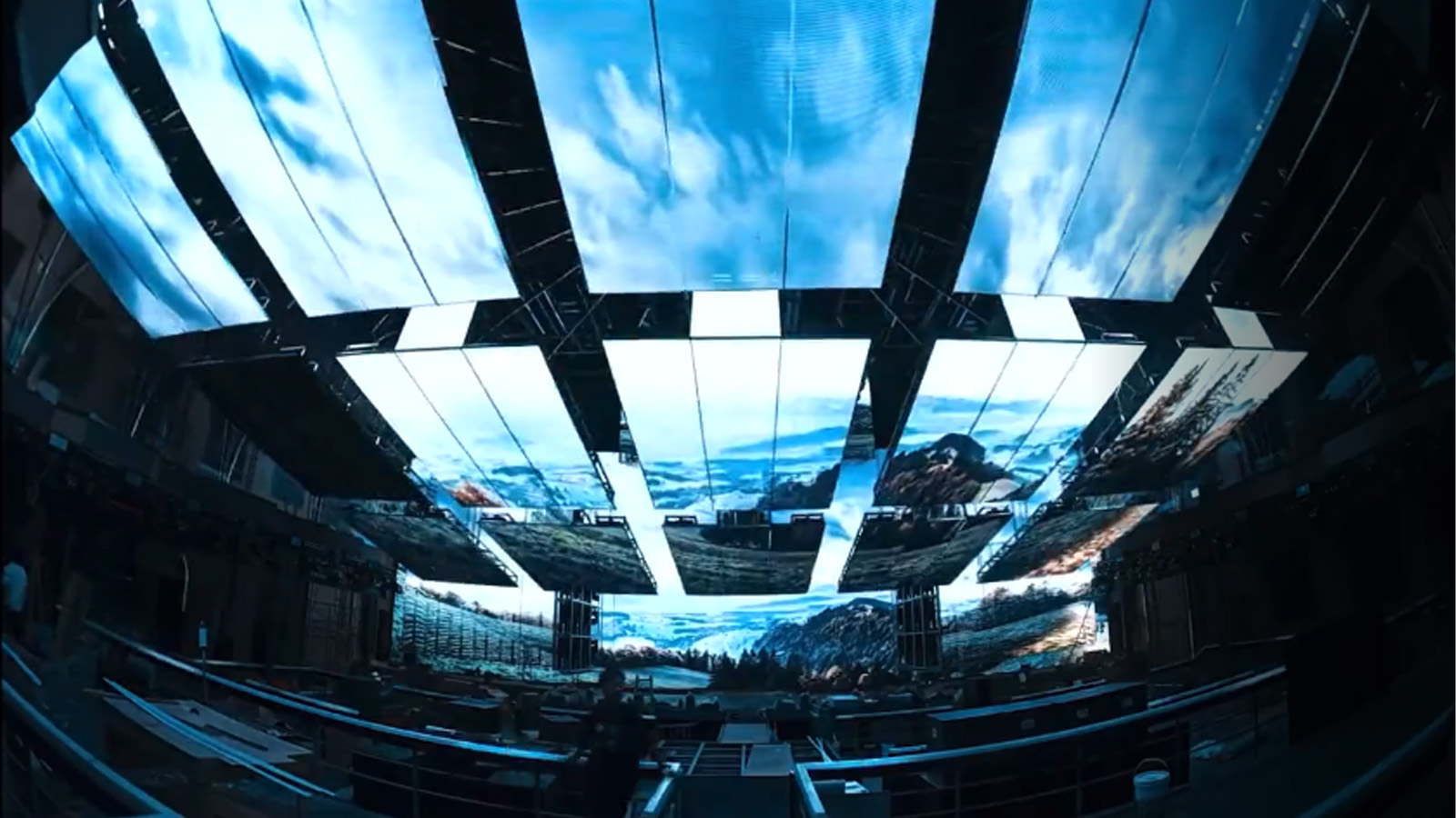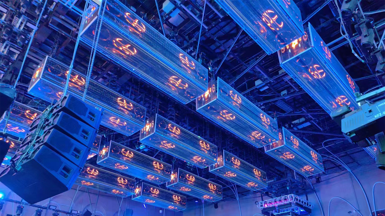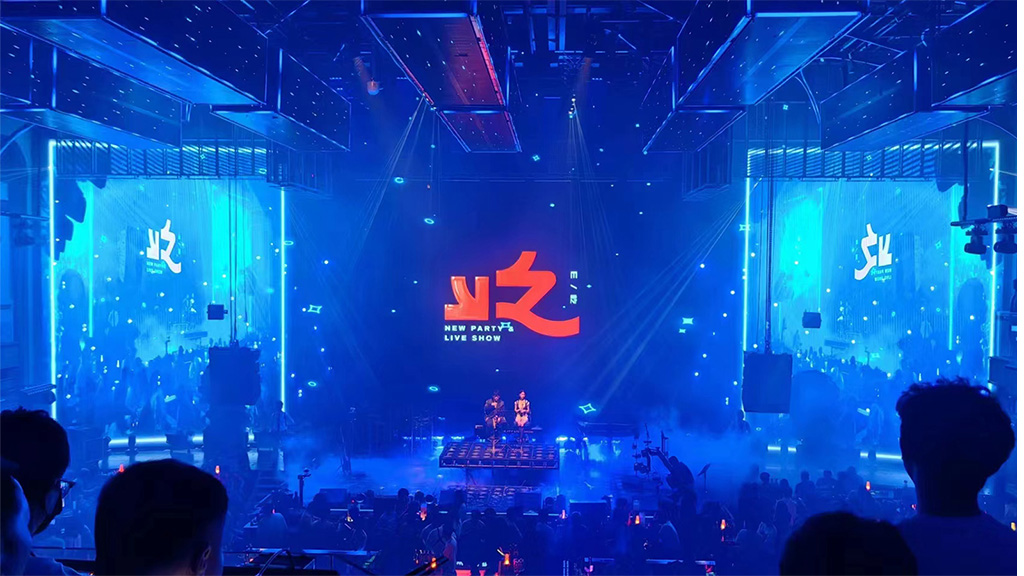 主屏采用超大型透明屏,屏幕后架设灯光,屏幕画面能与灯光相结合,展现出极佳的舞美效果。天花顶部设置可升降透明屏,跟随音乐浮动烘托氛围。