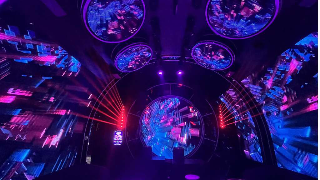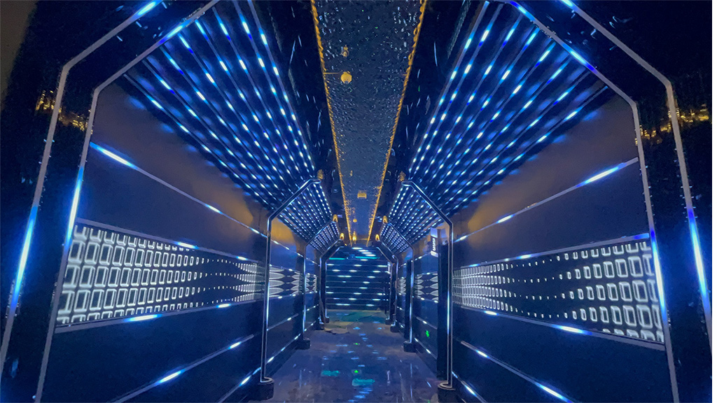 由LED屏幕个性化定制+LED灯带,组成具有独特风格的LED屏幕造型,通过控制系统可调试出绚丽多彩的场景,让LED屏幕与LED灯带更加相得益彰,能够呈现出细腻、清晰的画面