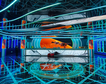 广州海豚音KTV采用了异形LED屏与灯带结合打造出一个充满科技感与活力的空间,这里LED屏幕与优美线条交织,打造出一种未来感十足的视觉体验。在灯光的映照下,整个空间显得更加迷人。柔和的灯光与LED屏幕的明亮色彩相互辉映,提供最佳的视觉享受。