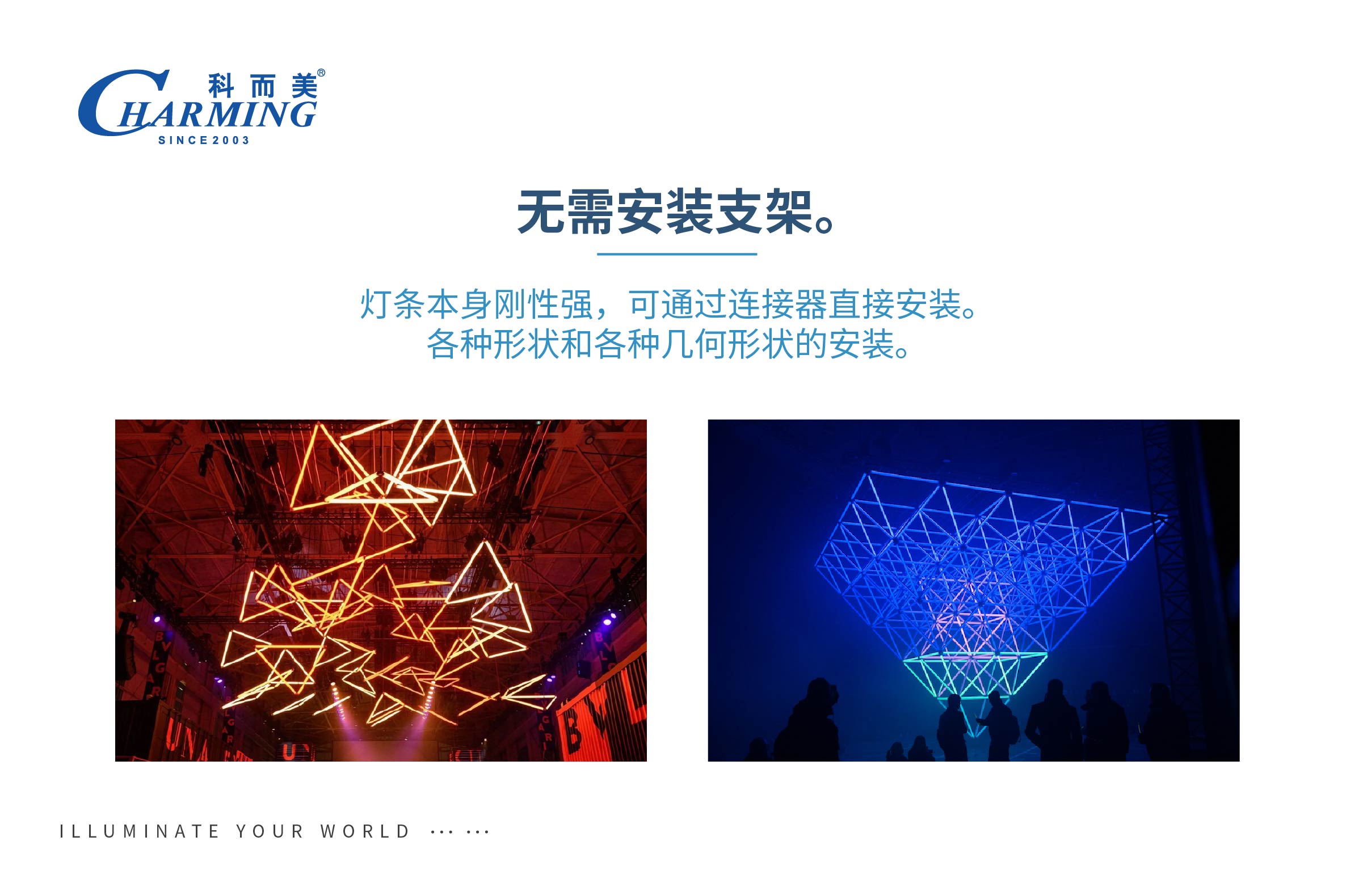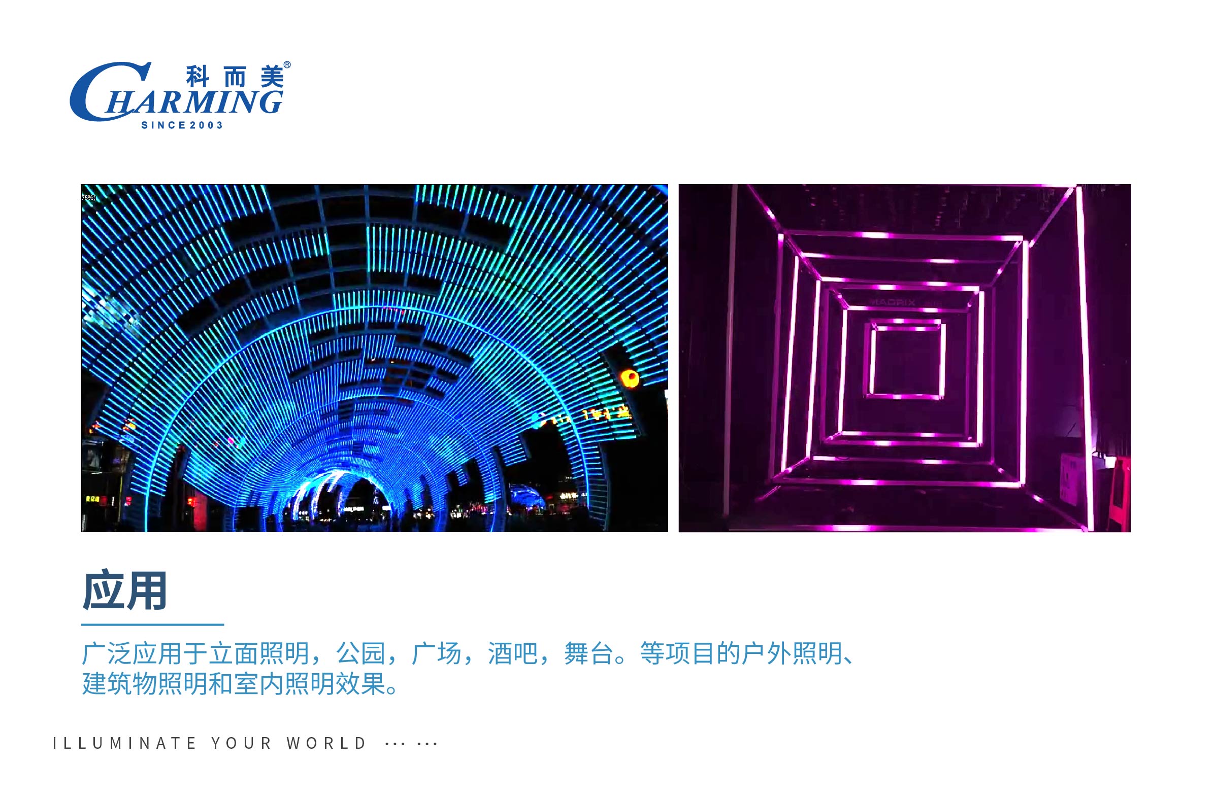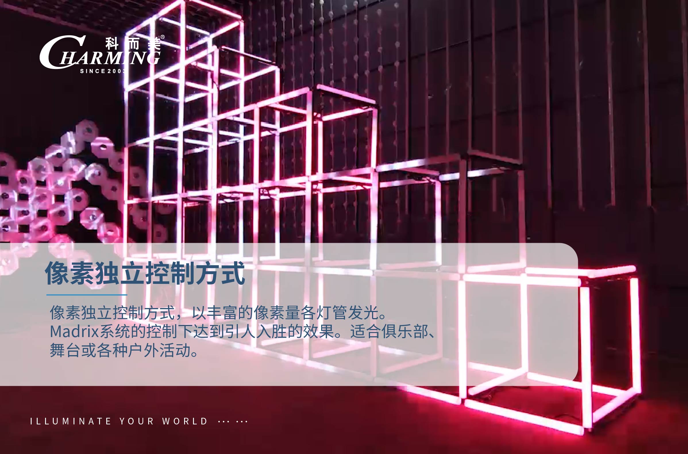 4.像素独立控制方式,以丰富的像素量各灯管发光。Madrix系统的控制下达到引人入胜的效果。适合俱乐部、舞台或各种户外活动。