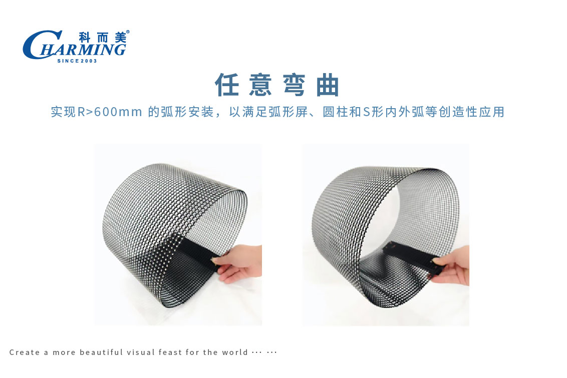 2.任意弯曲,实现R>600mm 的弧形安装,以满足弧形屏、圆柱和S形内外弧等创造性应用;