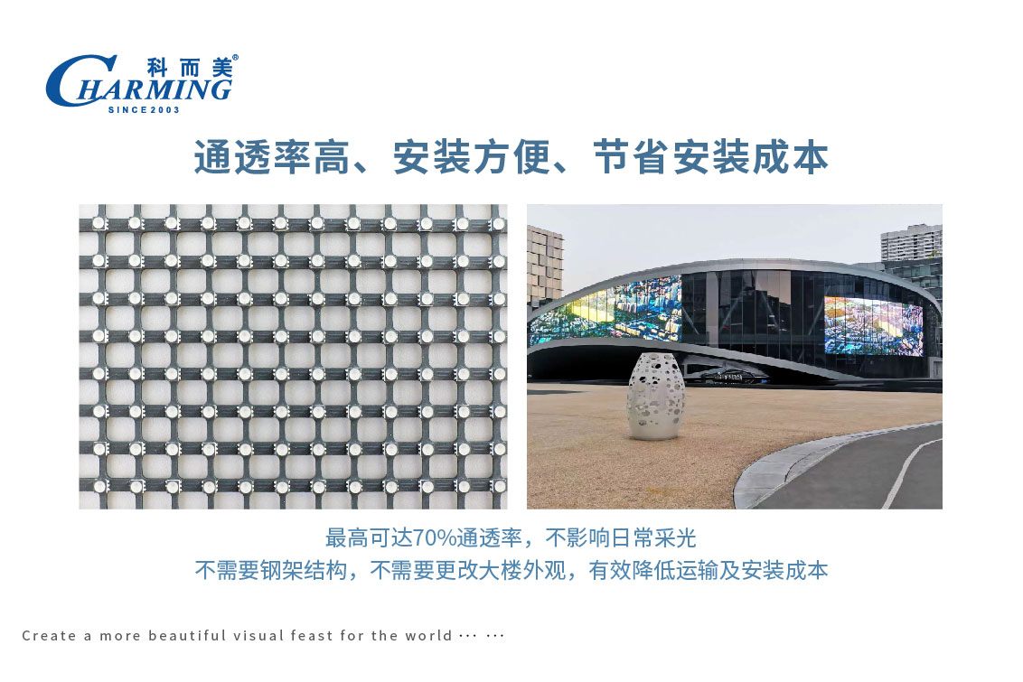 3.最高可达70%通透率,不影响日常采光,不需要钢架结构,不需要更改大楼外观,有效降低运输及安装成本;